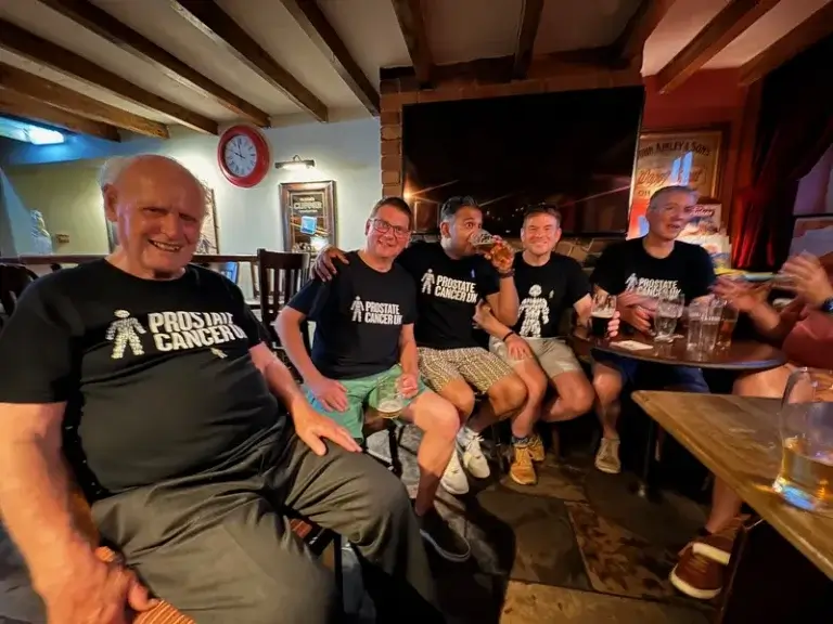 Originally, like most male voice choirs, we sang in uniforms with a blazer with the choir logo and a tie. More recently, we have varied what we wear when we sing. We sang in performance many times in aid of Prostate Cancer UK and they provided us with T-shirts which we have been very happy to wear. At Christmas time, we have been wearing black shirts with Christmas red accompaniments. We have also sung in white shirts and choir ties, and we are currently reviewing how we look and what we should wear in future.